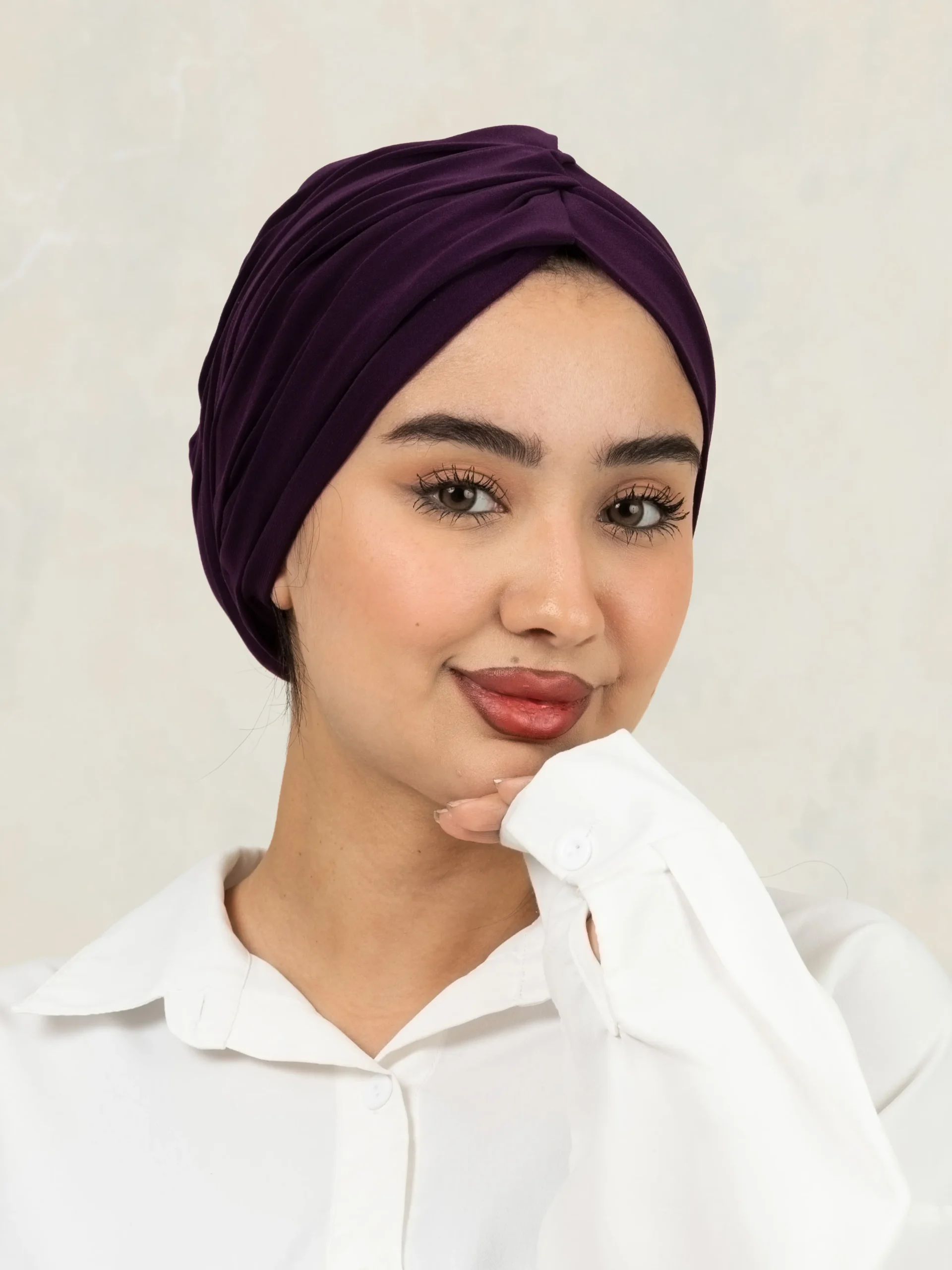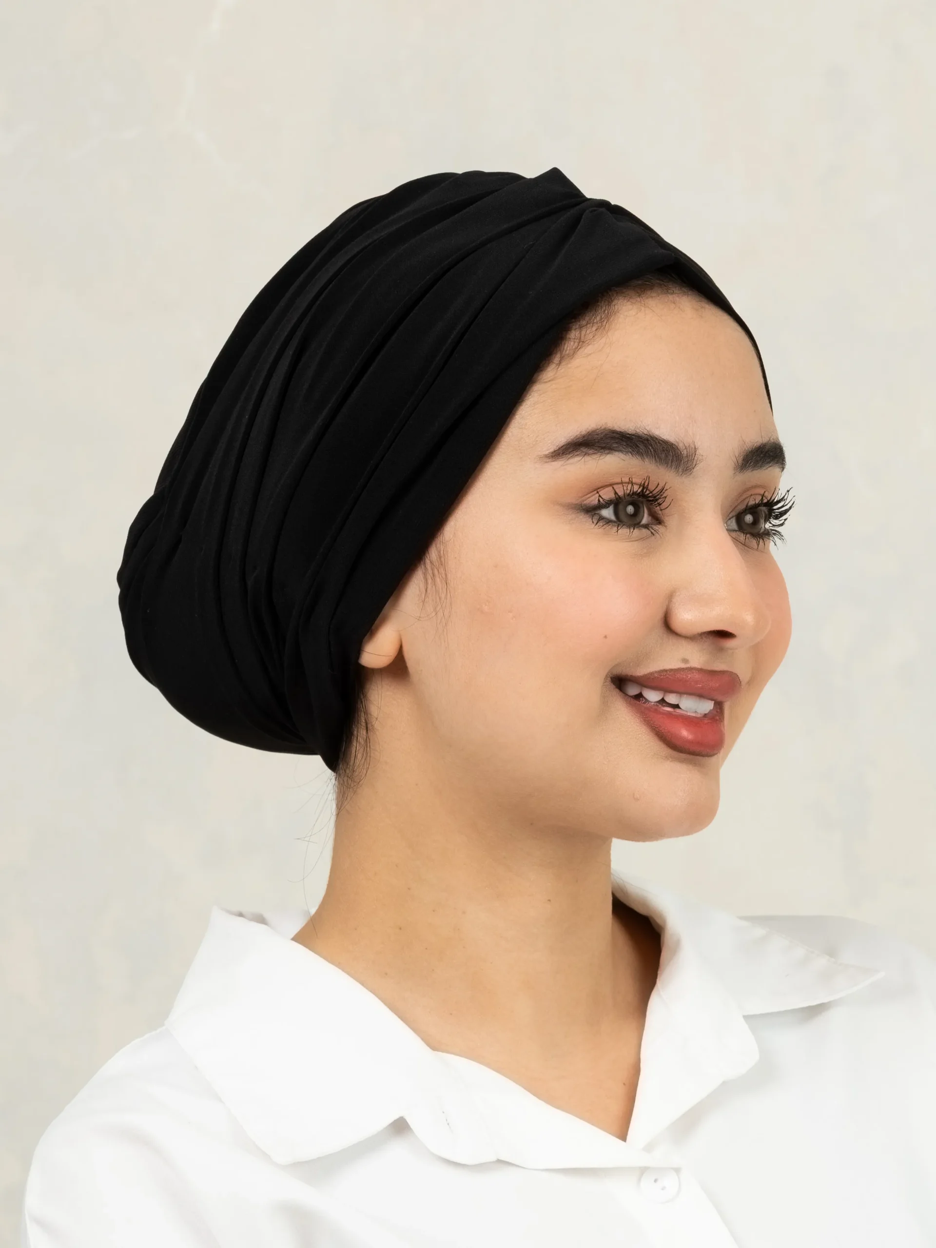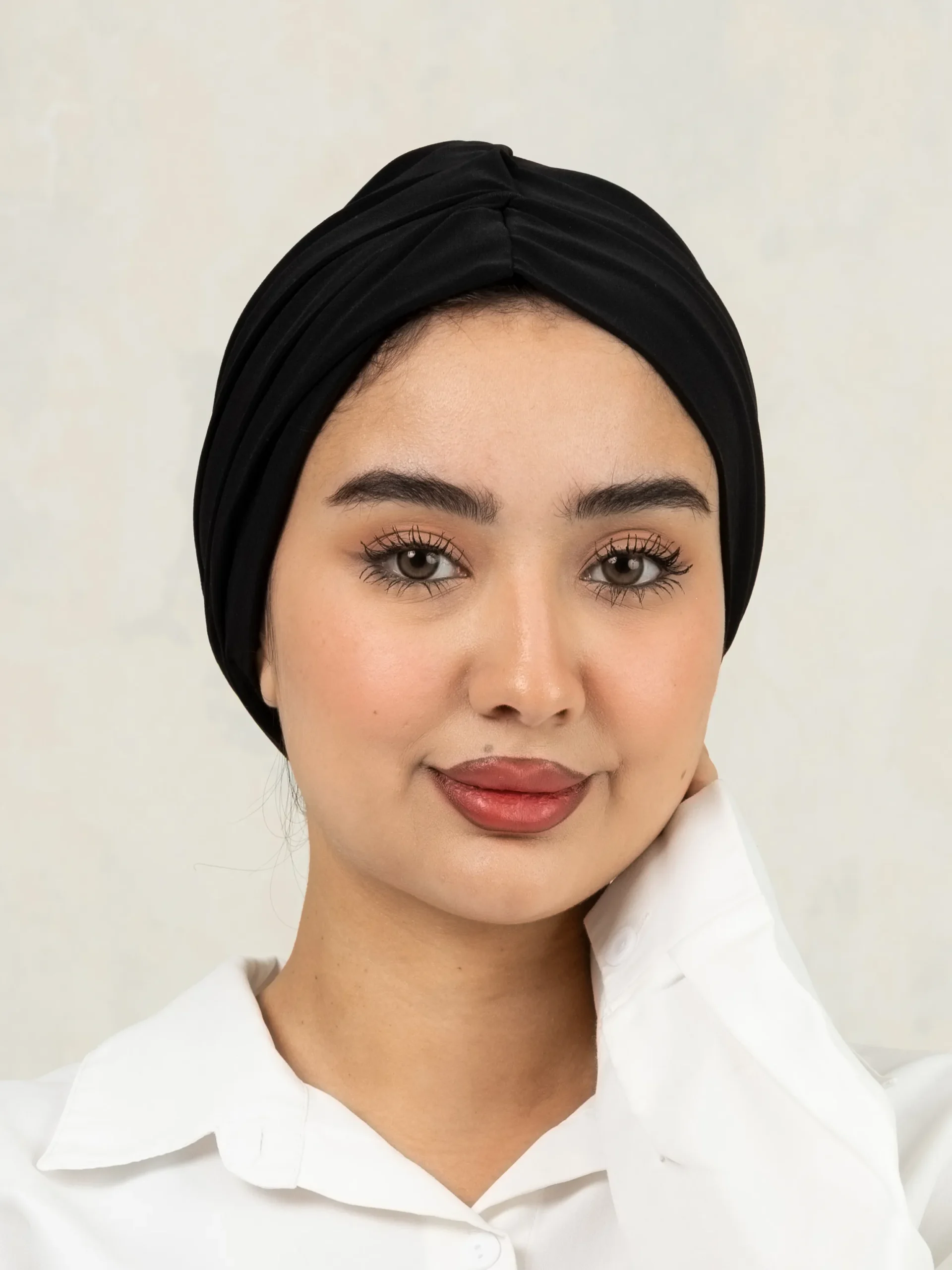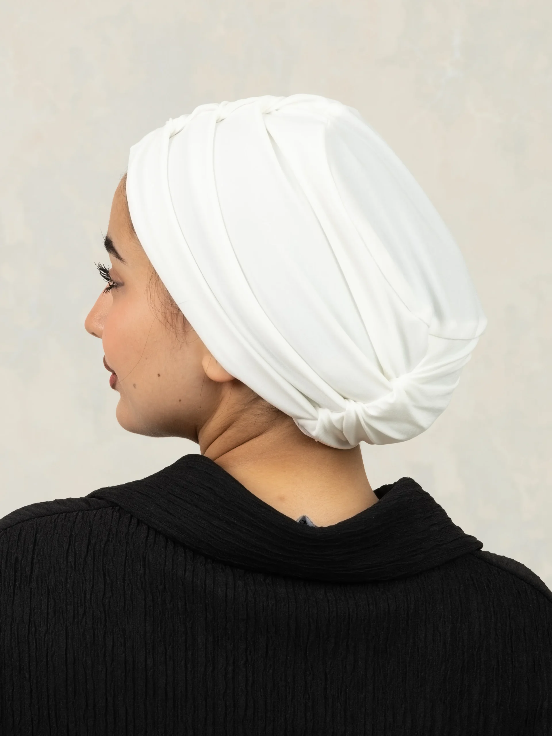 Pre-styled jersey braided turban with stretch comfort and secure hold. Combines style and convenience for a chic, ready-to-wear look.