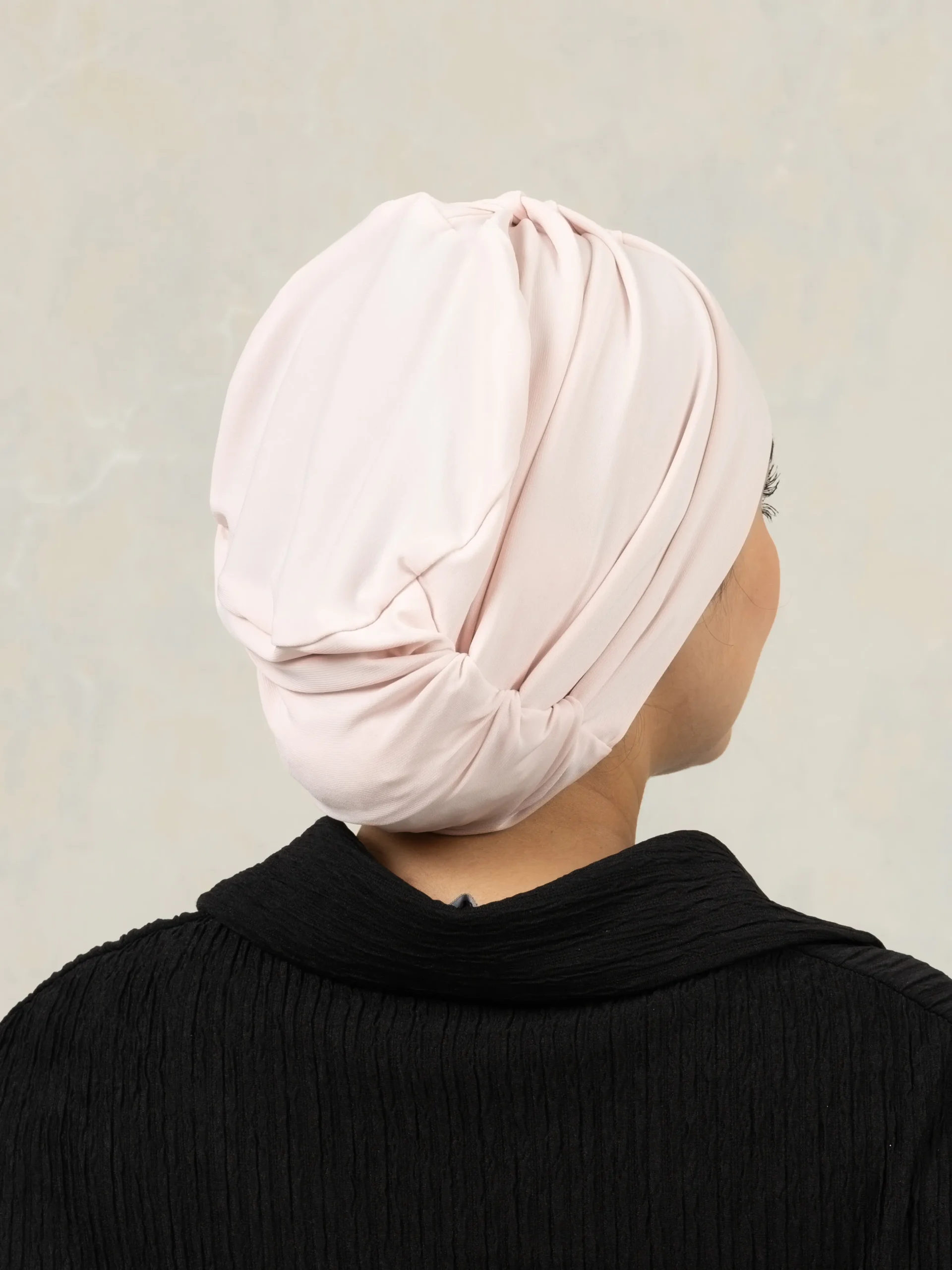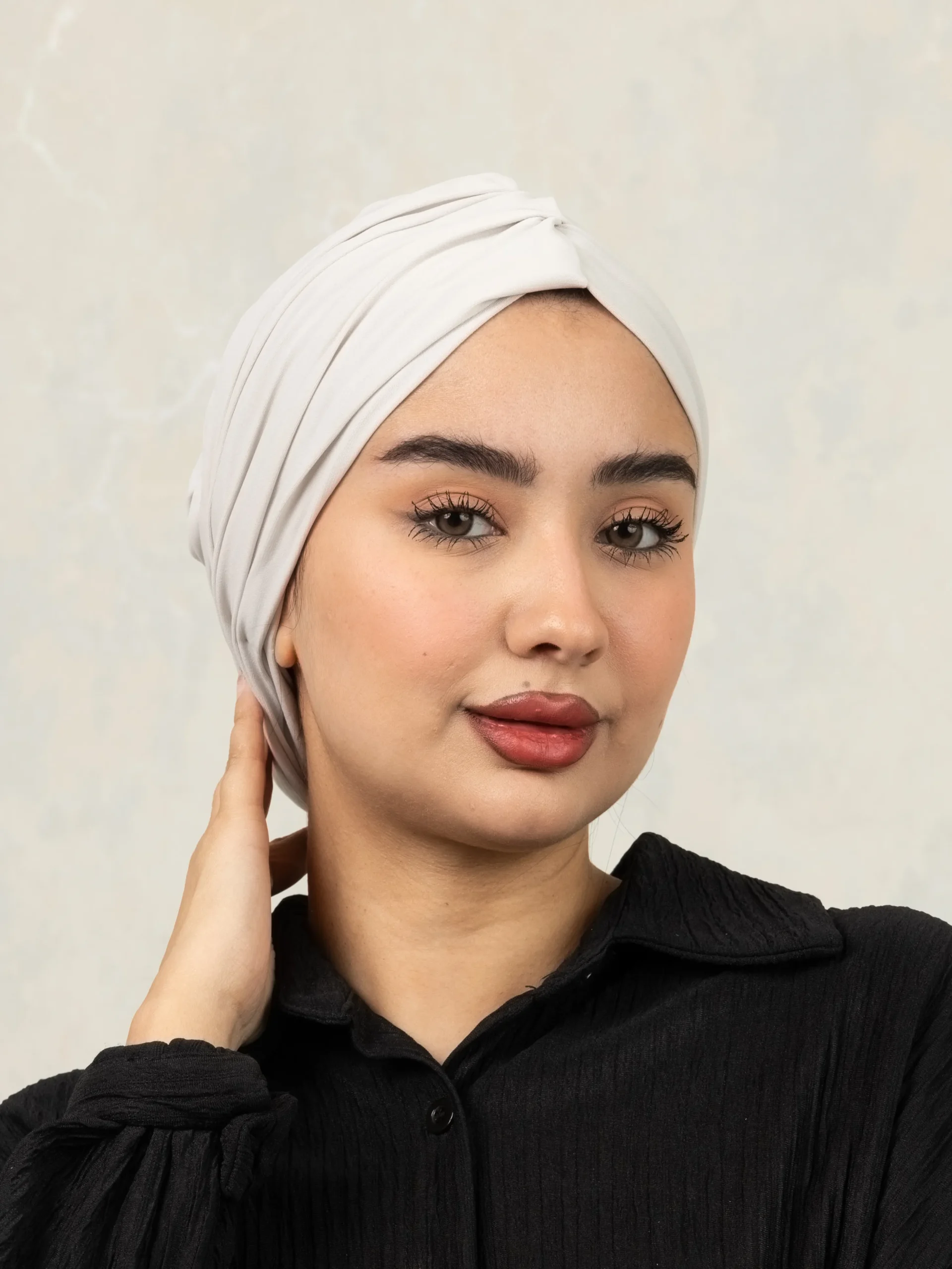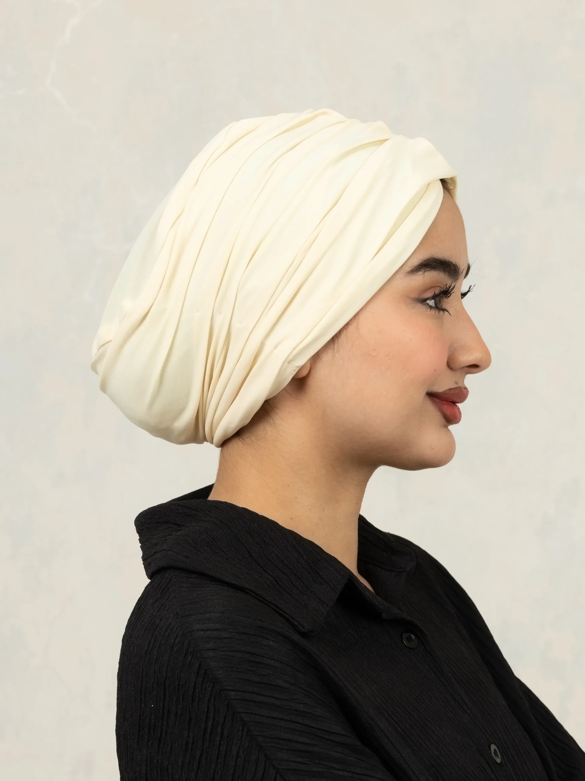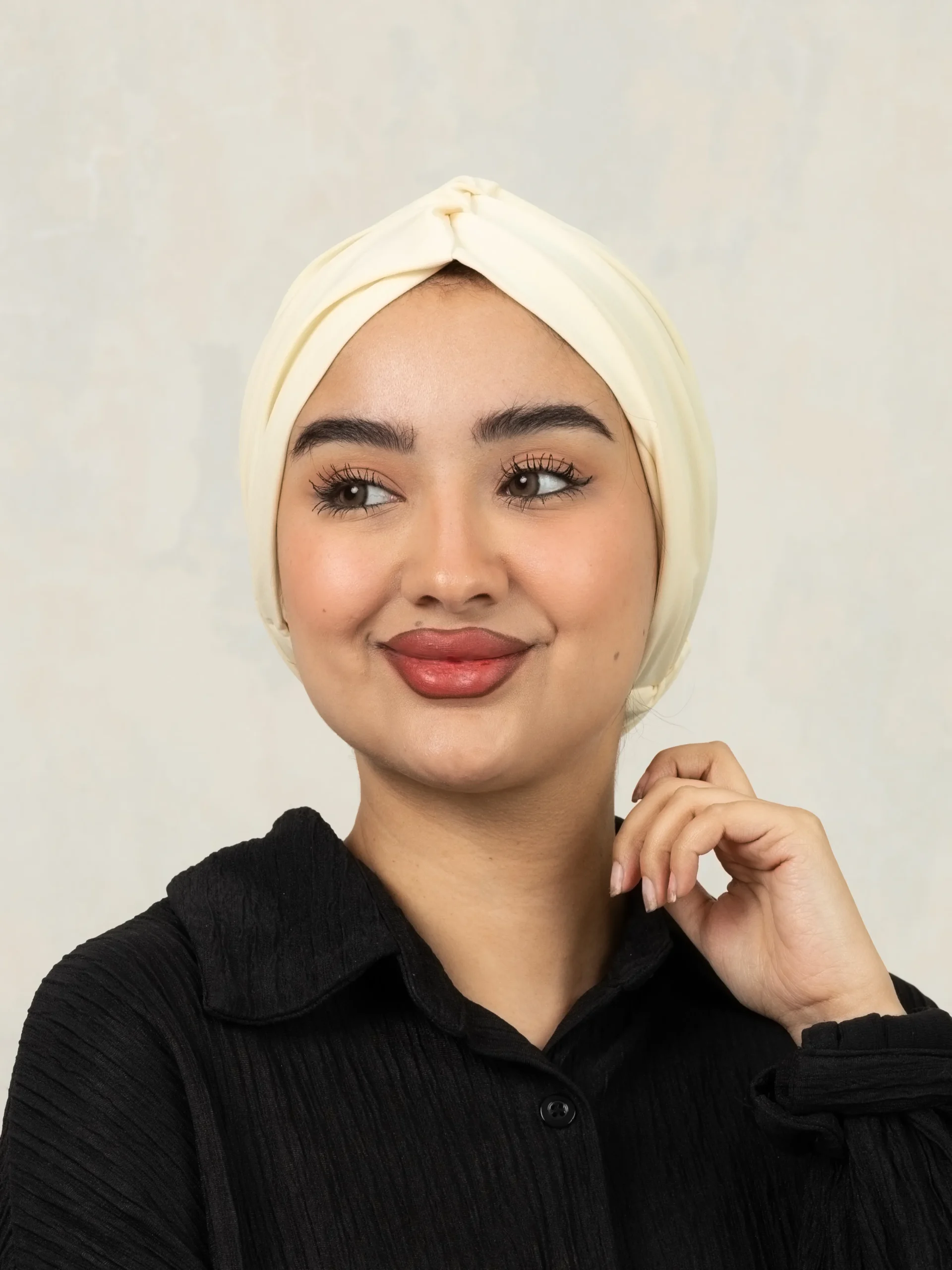Pre-styled jersey braided turban with stretch comfort and secure hold. Combines style and convenience for a chic, ready-to-wear look.