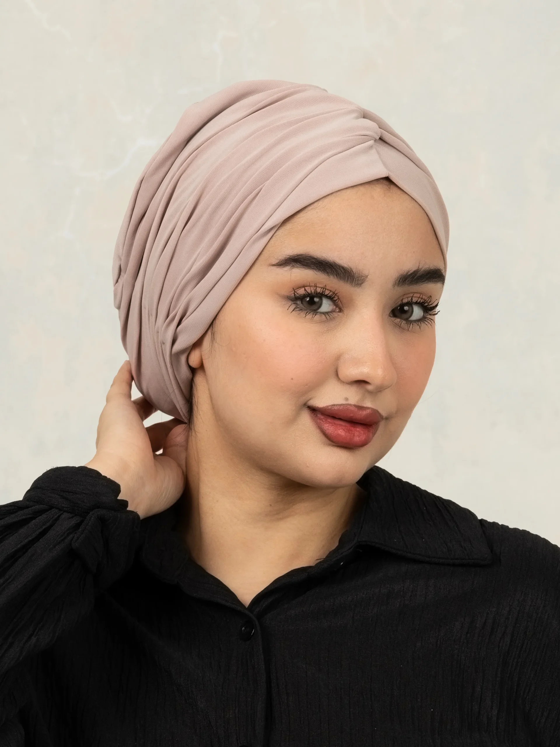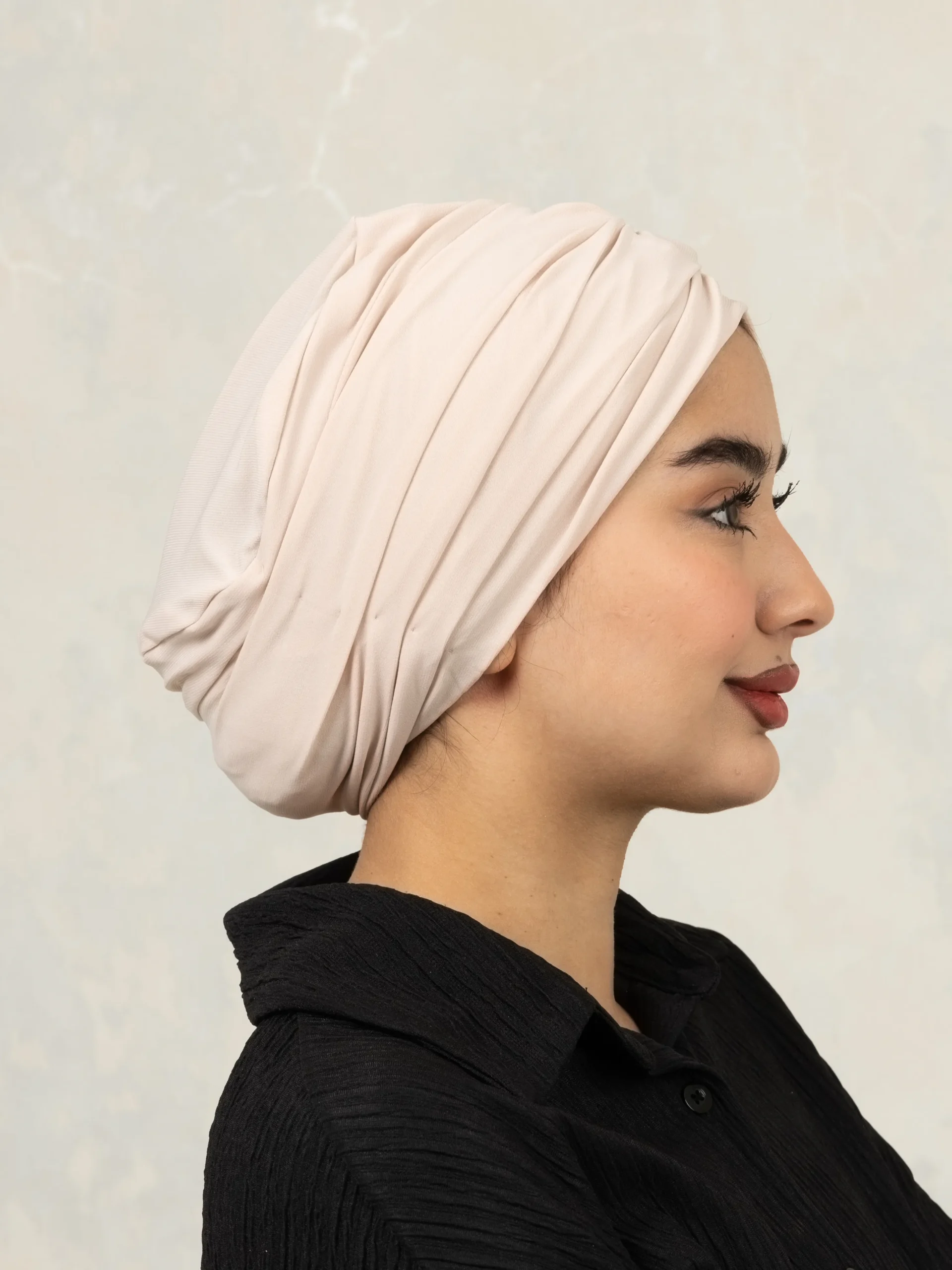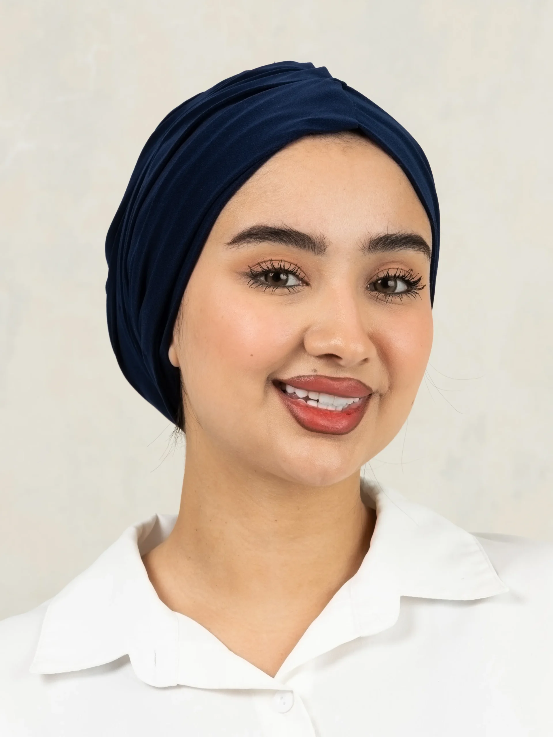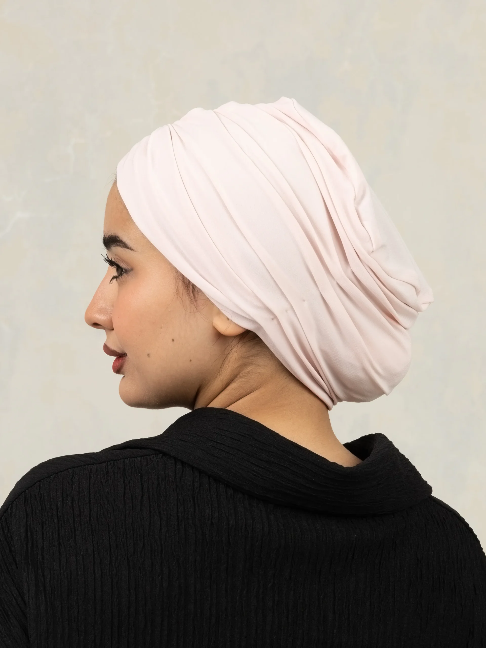 Pre-styled jersey braided turban with stretch comfort and secure hold. Combines style and convenience for a chic, ready-to-wear look.