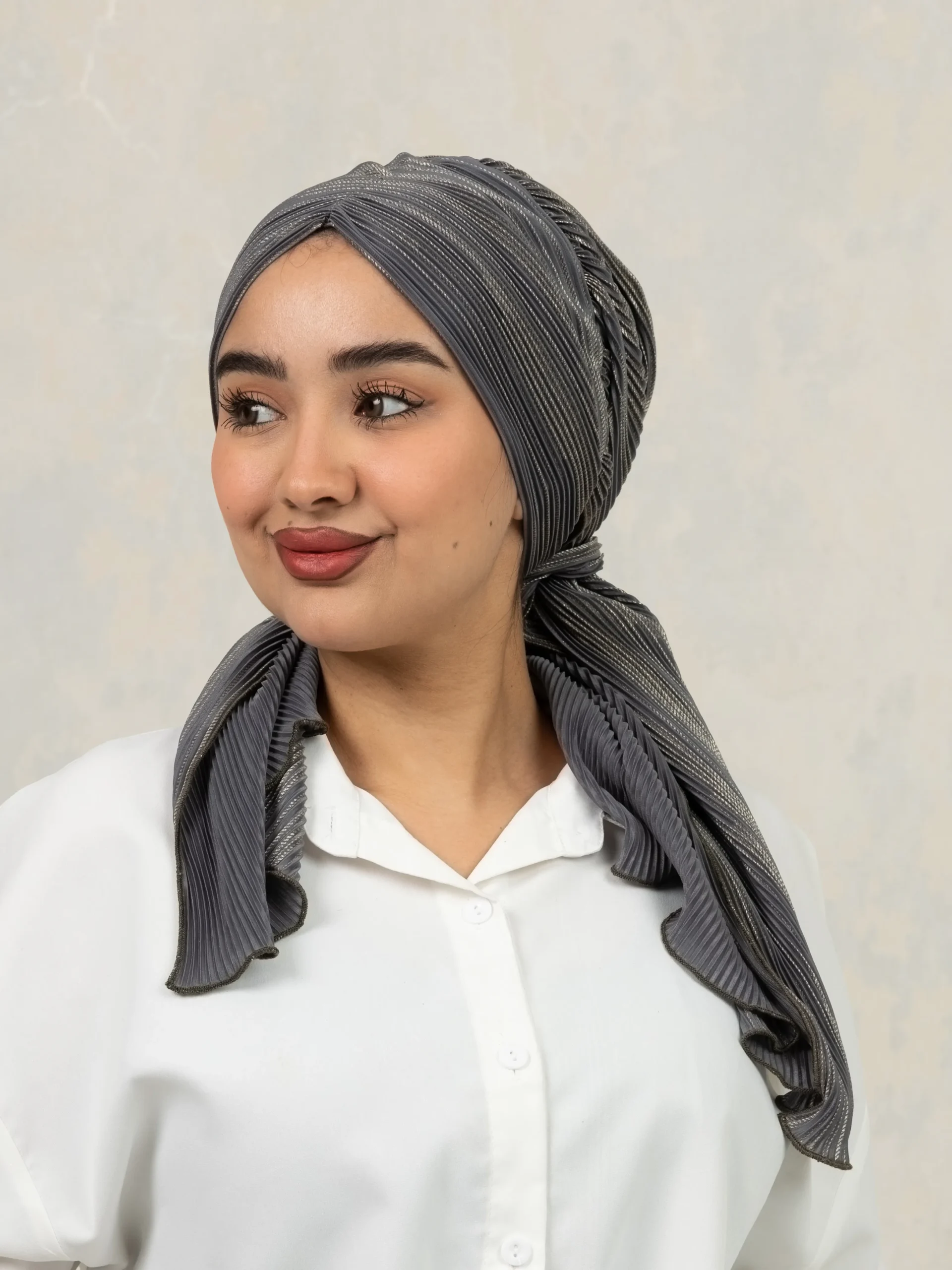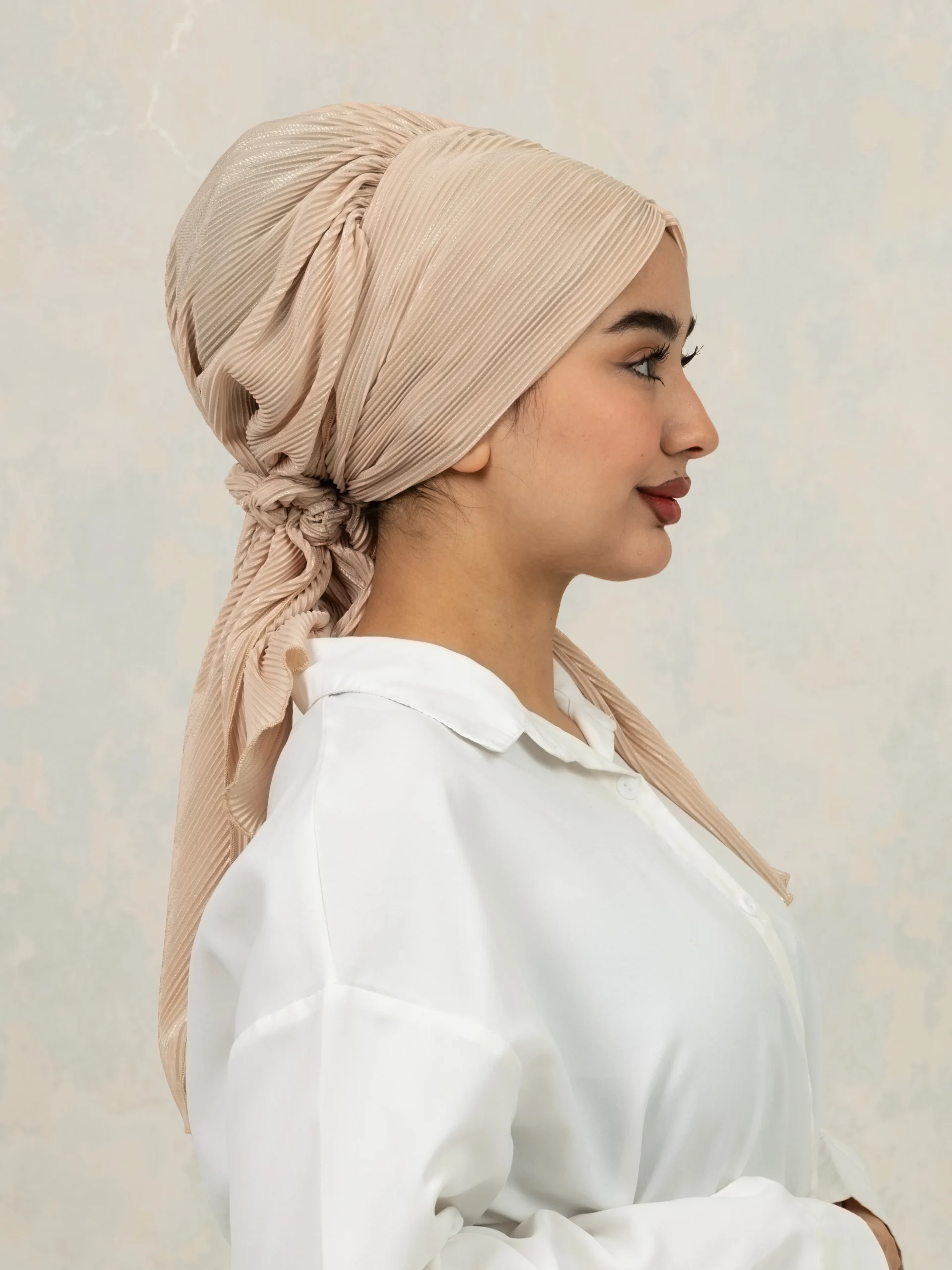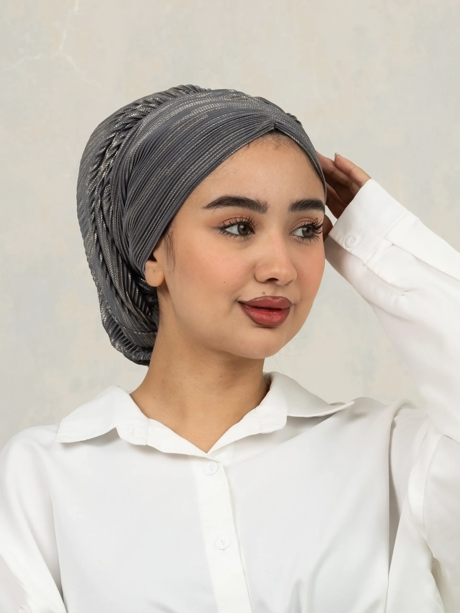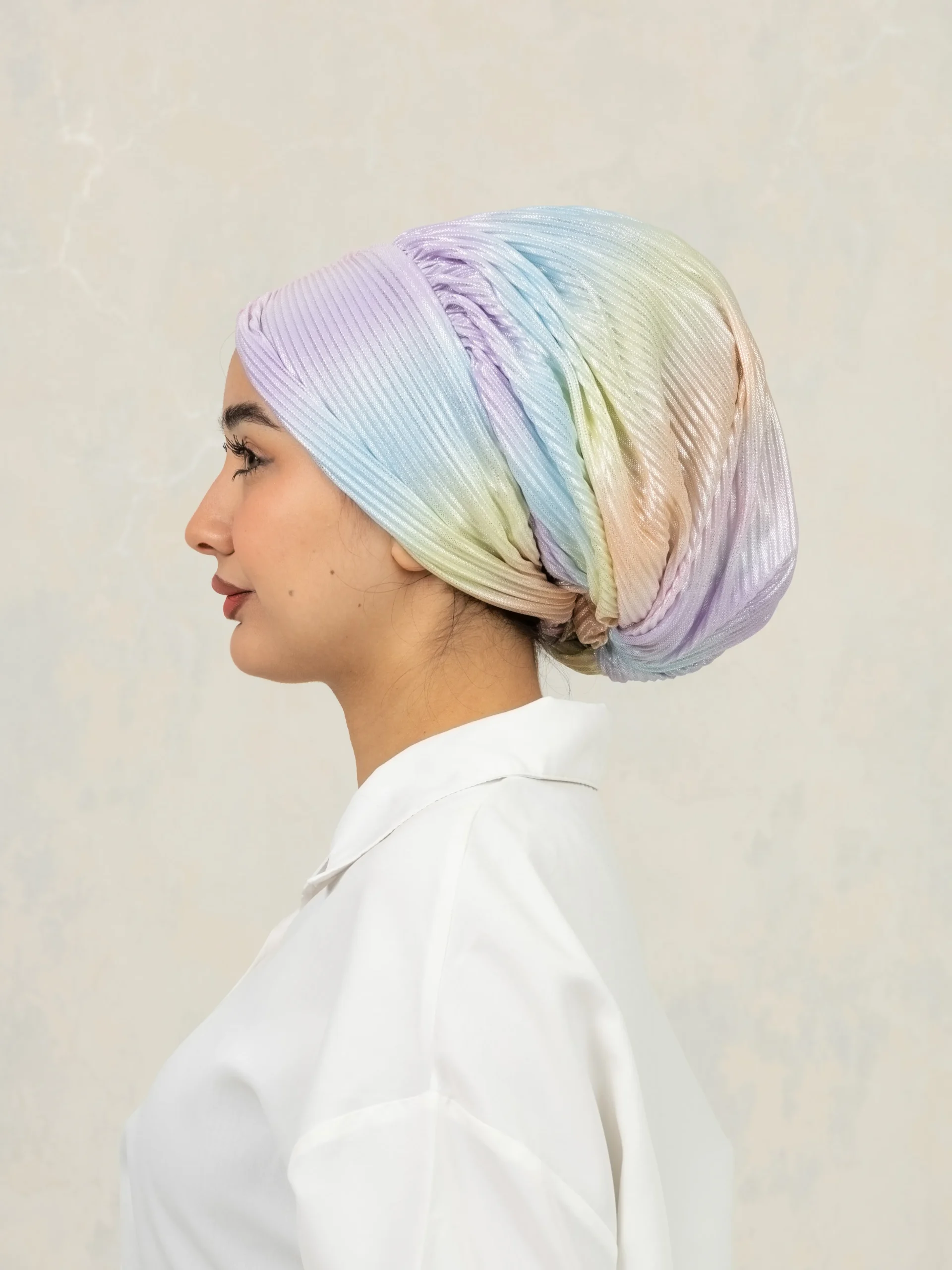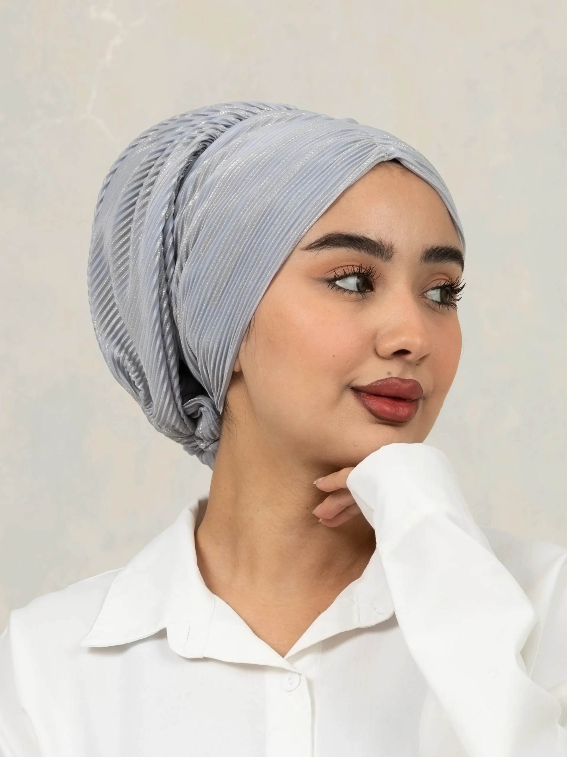 No-iron crinkle turban designed for effortless, ready-to-wear styling. Comes with scrunchie detail for easy bun making and can be styled in multiple versatile ways for everyday modest fashion.