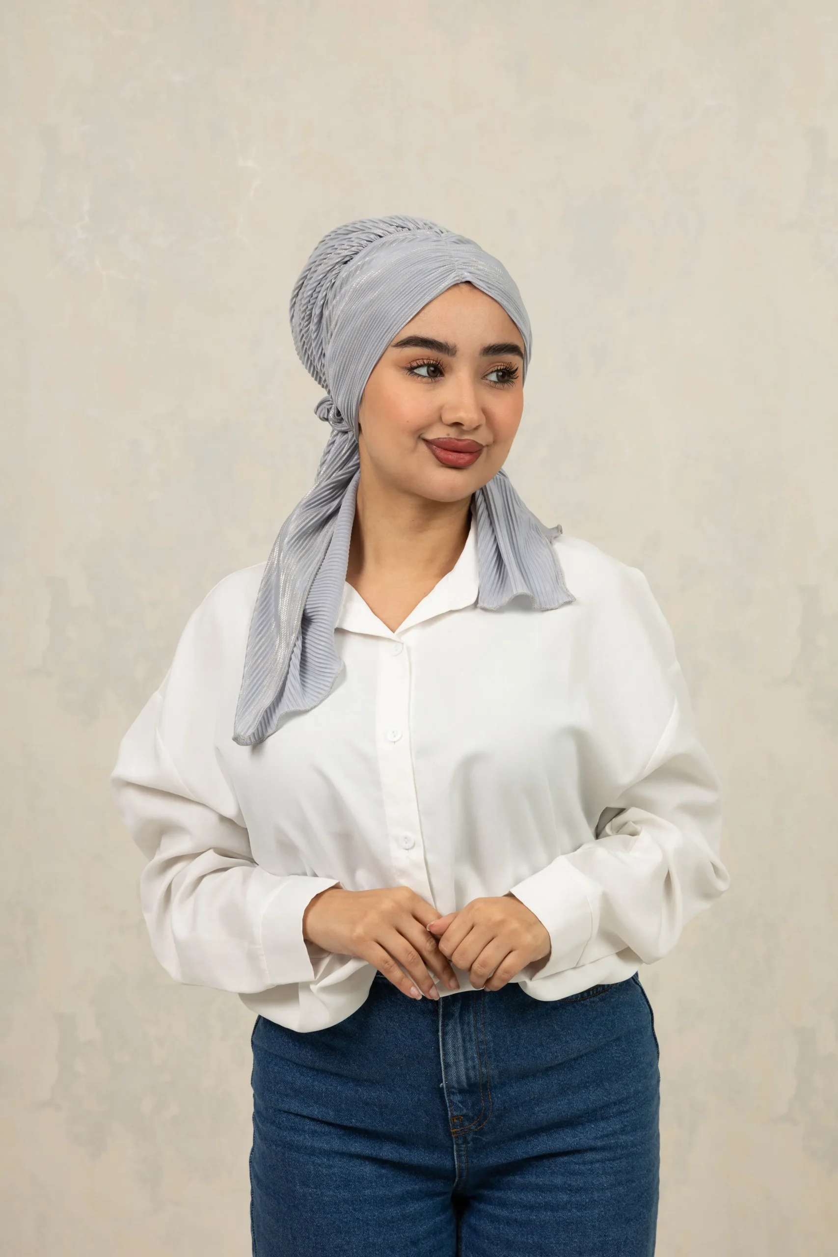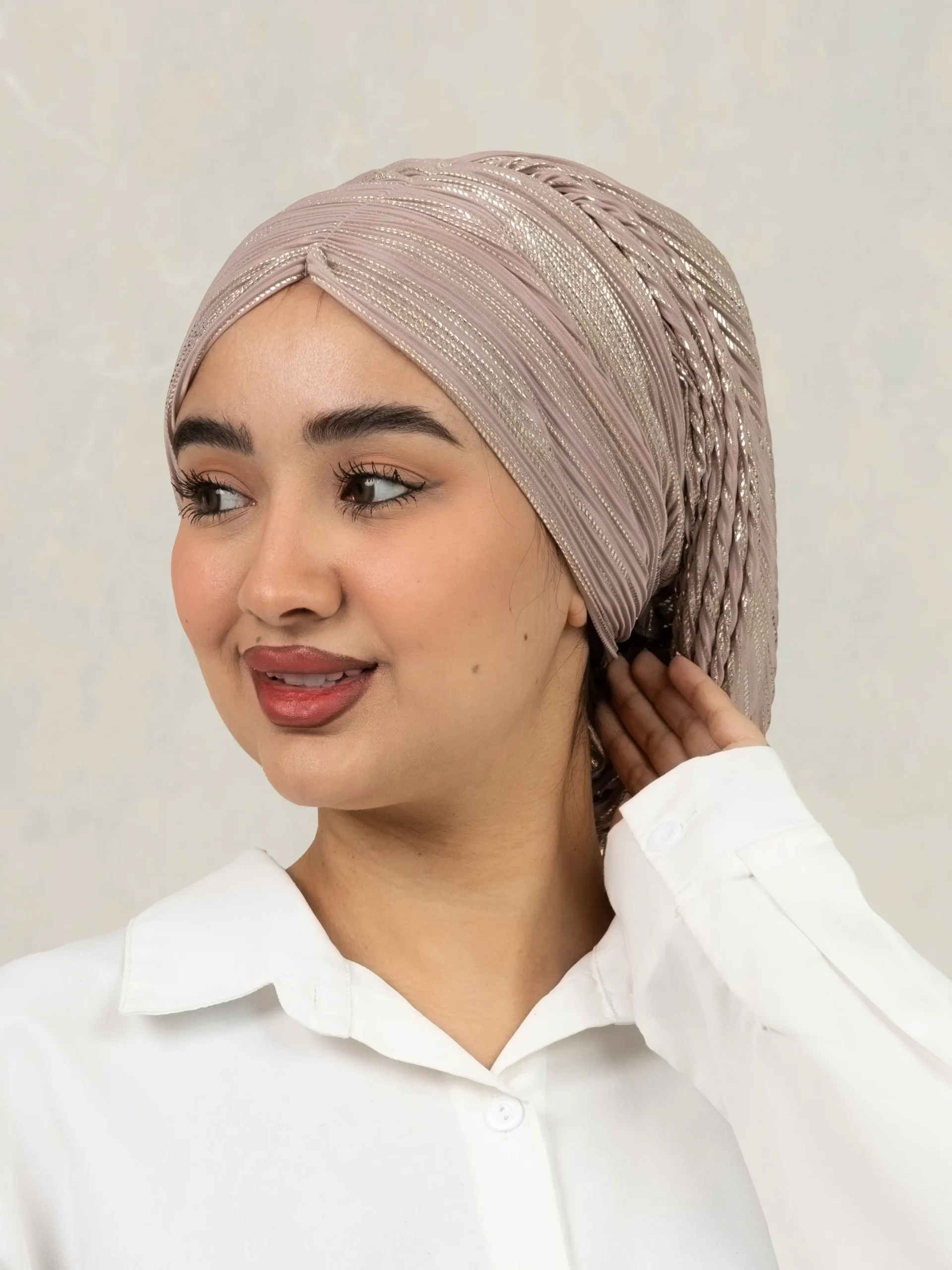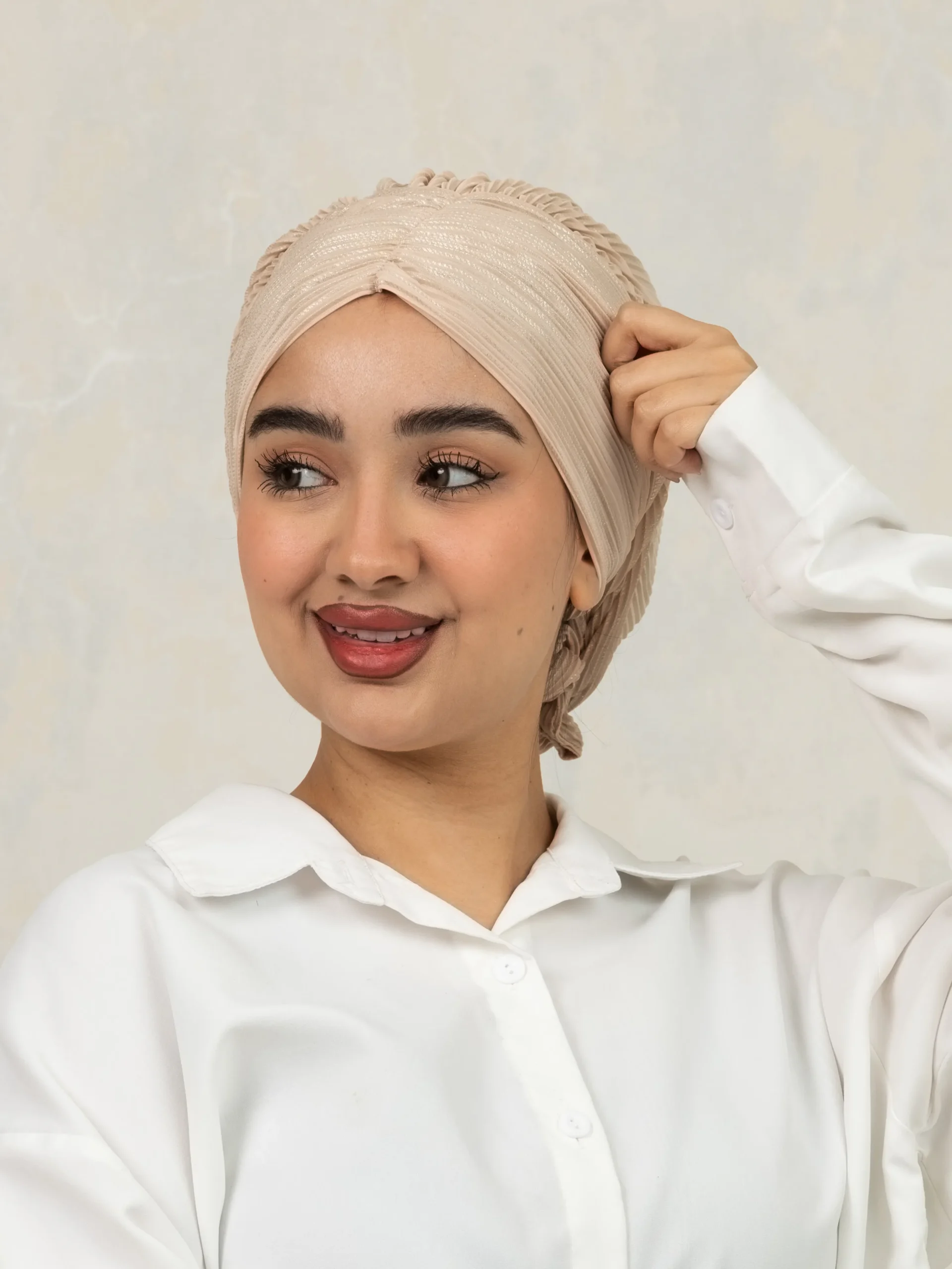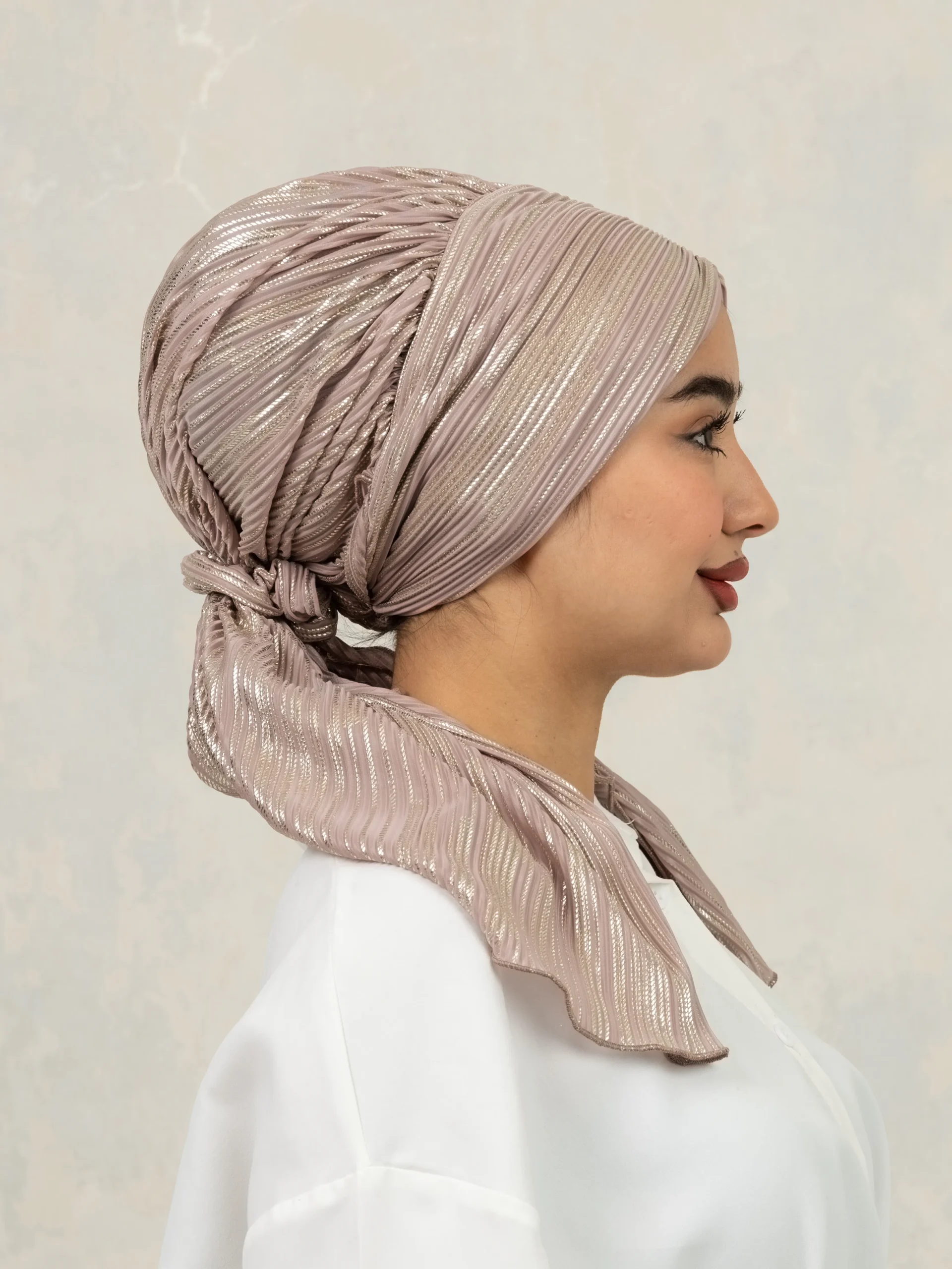 No-iron crinkle turban designed for effortless, ready-to-wear styling. Comes with scrunchie detail for easy bun making and can be styled in multiple versatile ways for everyday modest fashion.