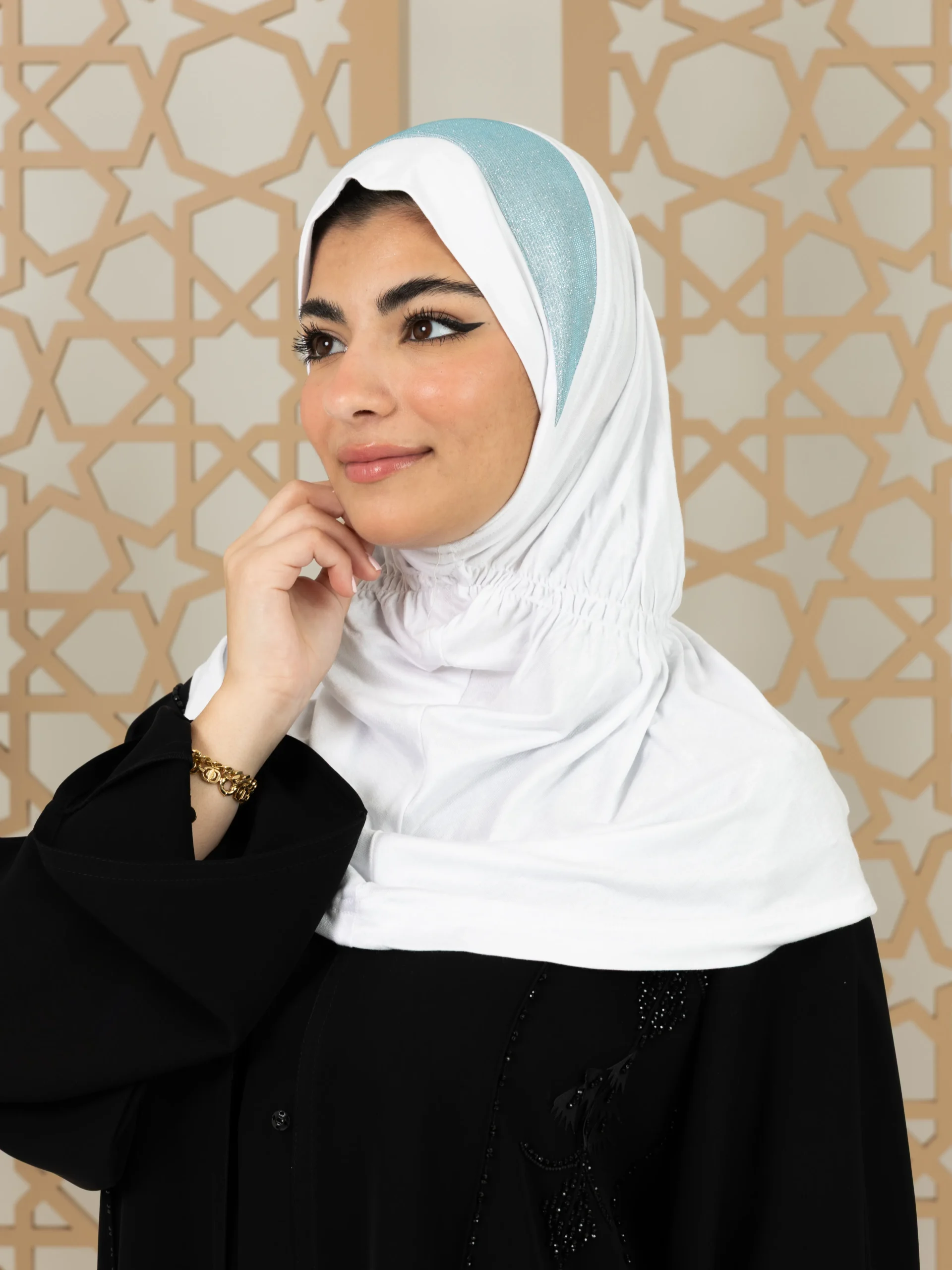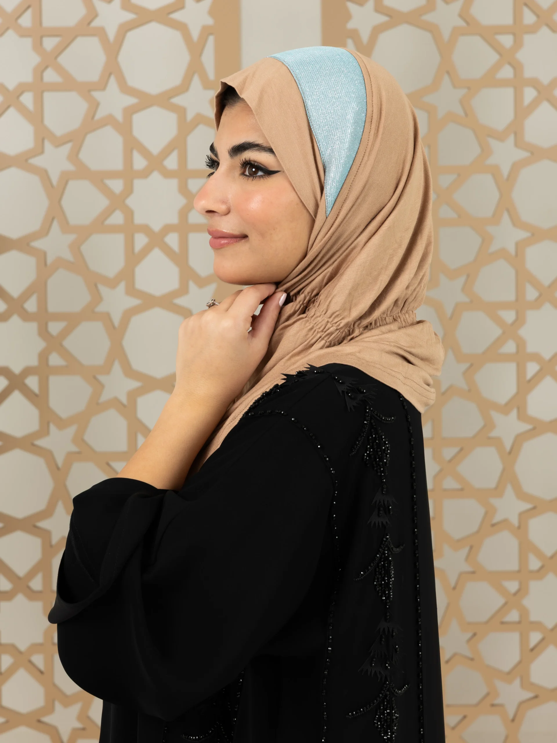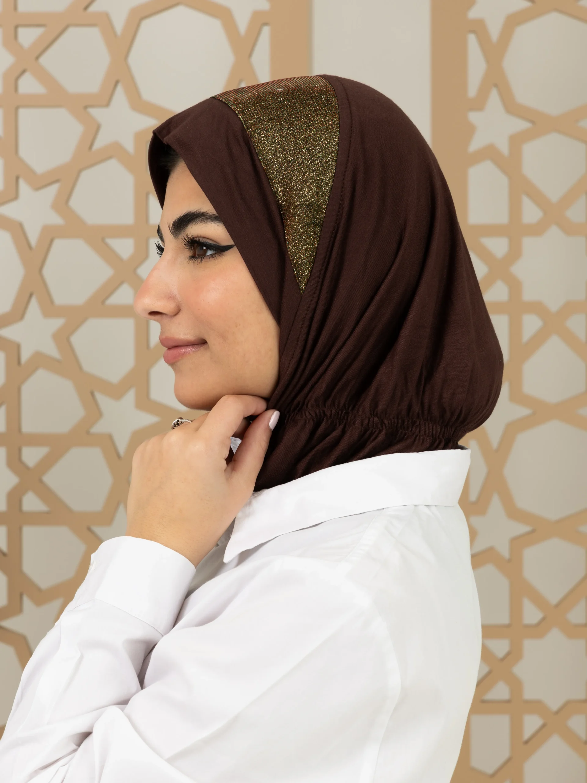 Stylish cotton hijab with a refined elegant touch for a graceful look. Ideal for special occasions and elevated everyday outfits.