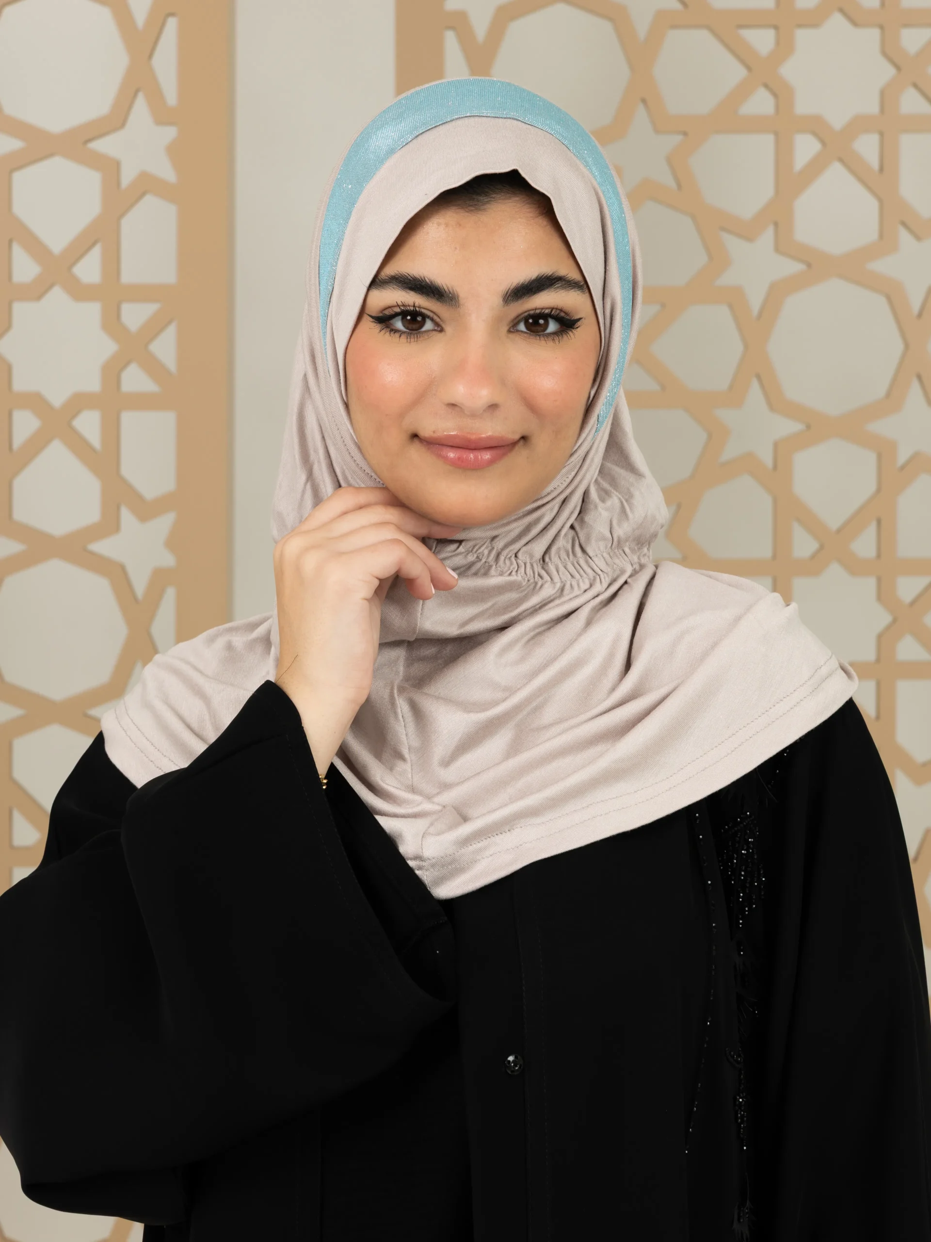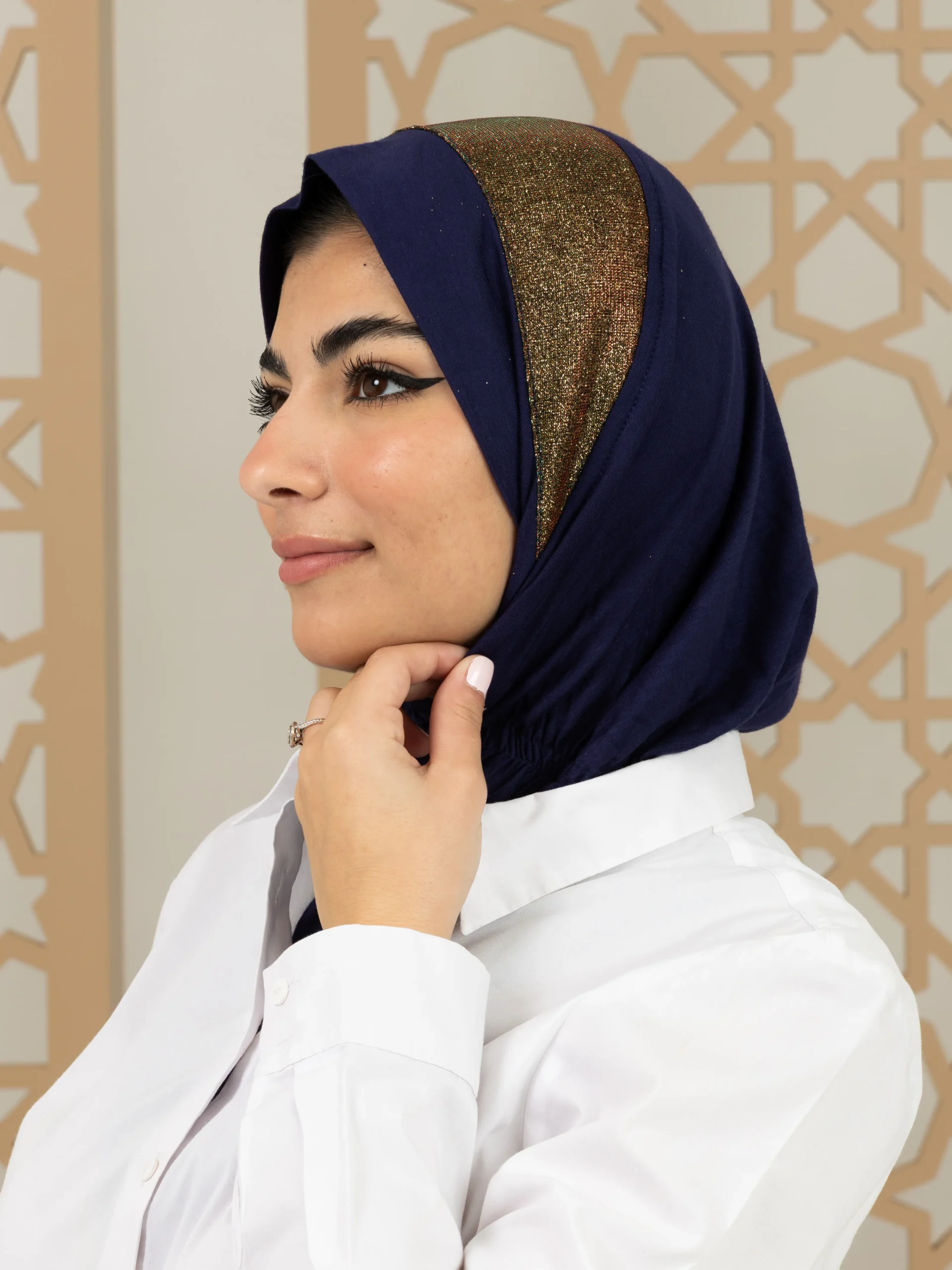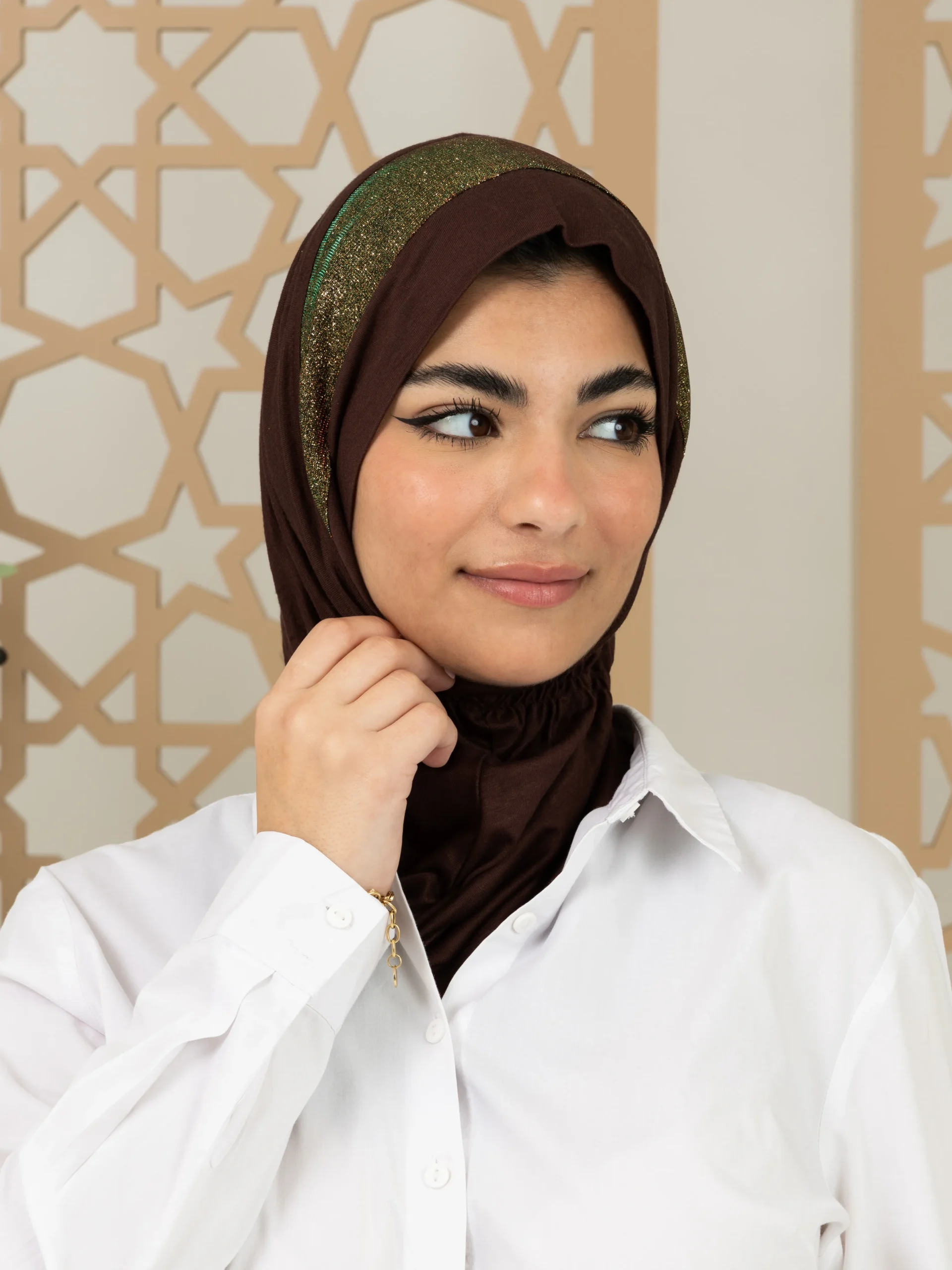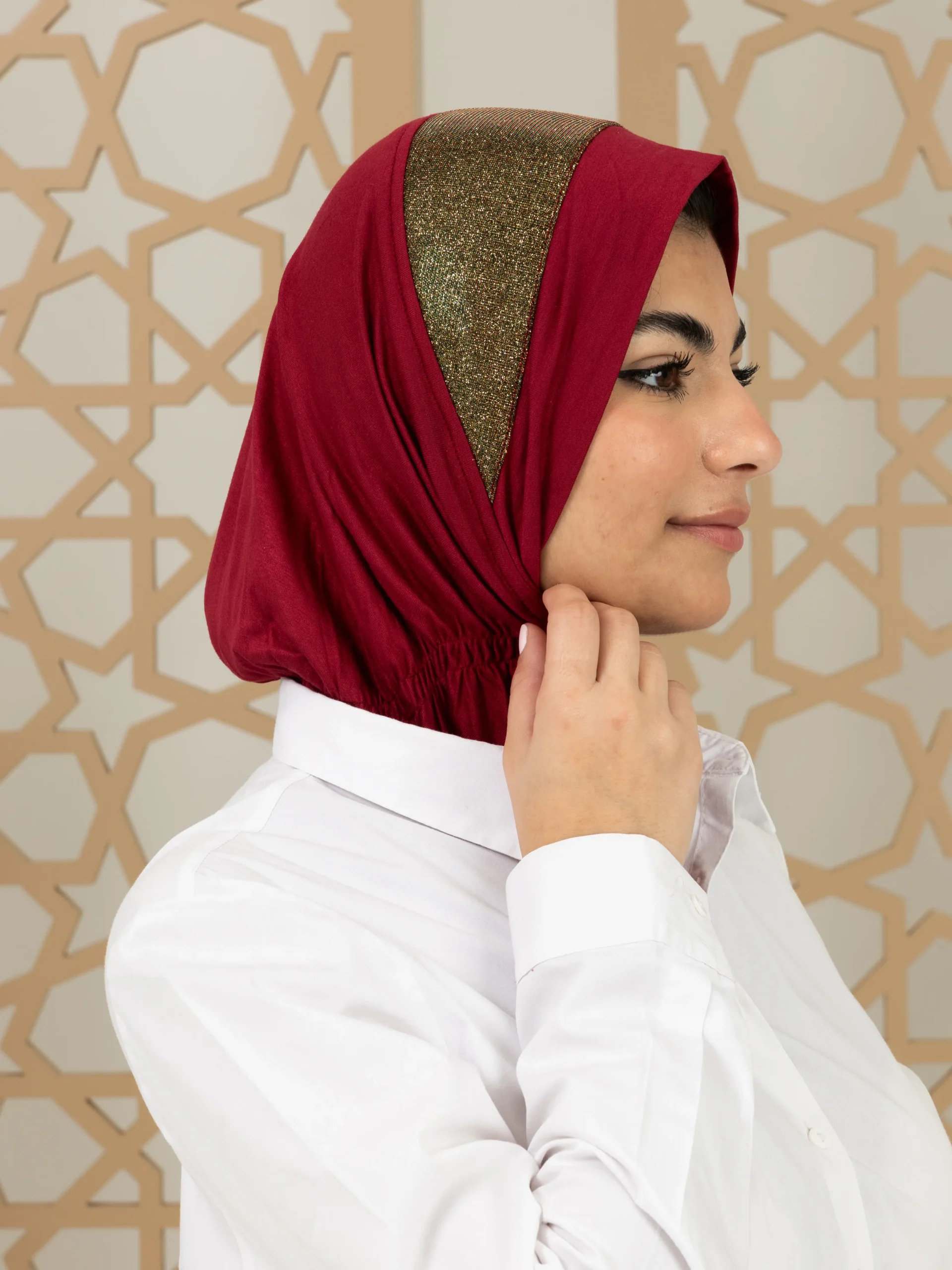 Stylish cotton hijab with a refined elegant touch for a graceful look. Ideal for special occasions and elevated everyday outfits.